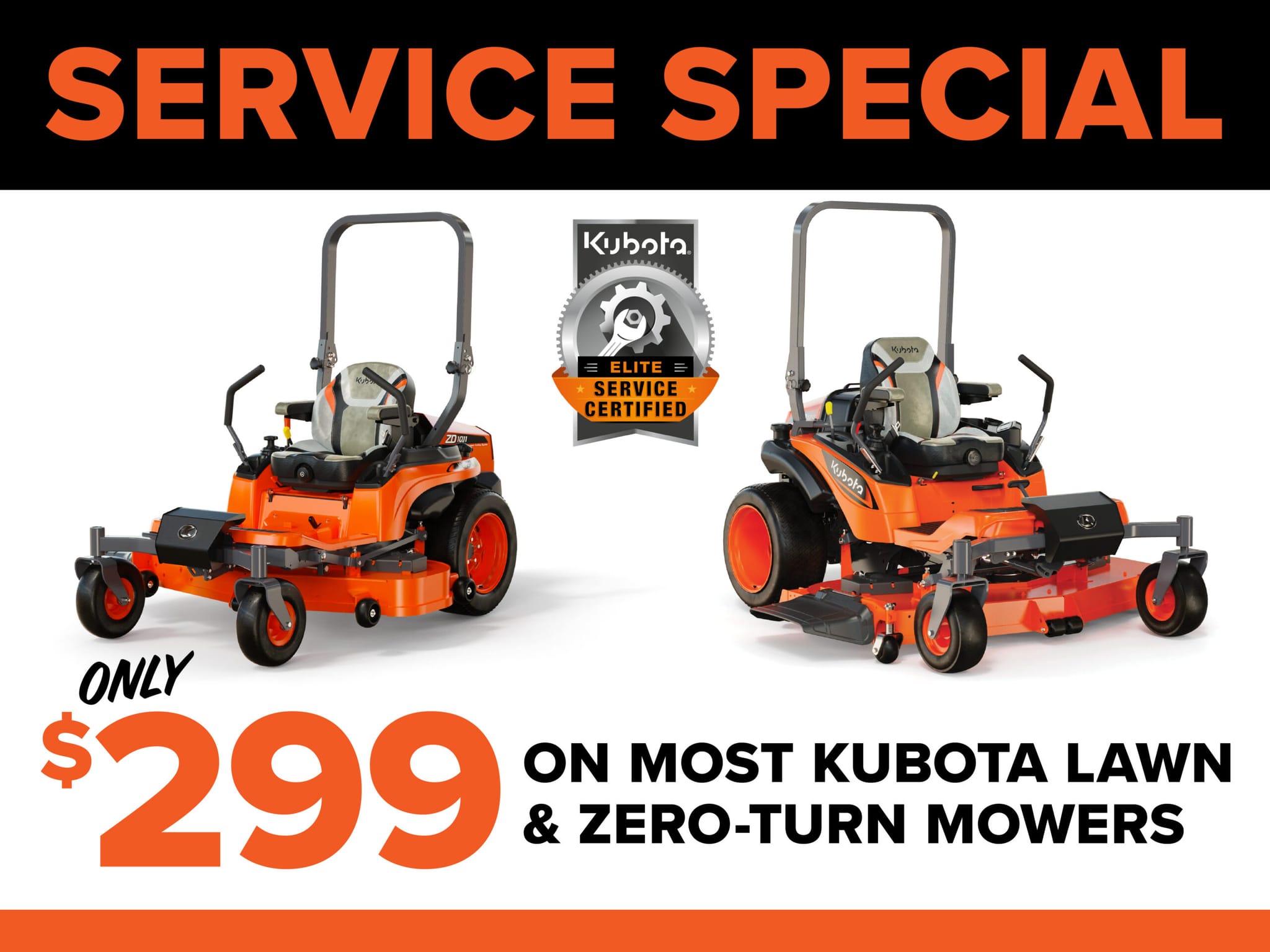 This Service includes the following for Kubota Mowers including Z,ZD,ZG,T and GR series: